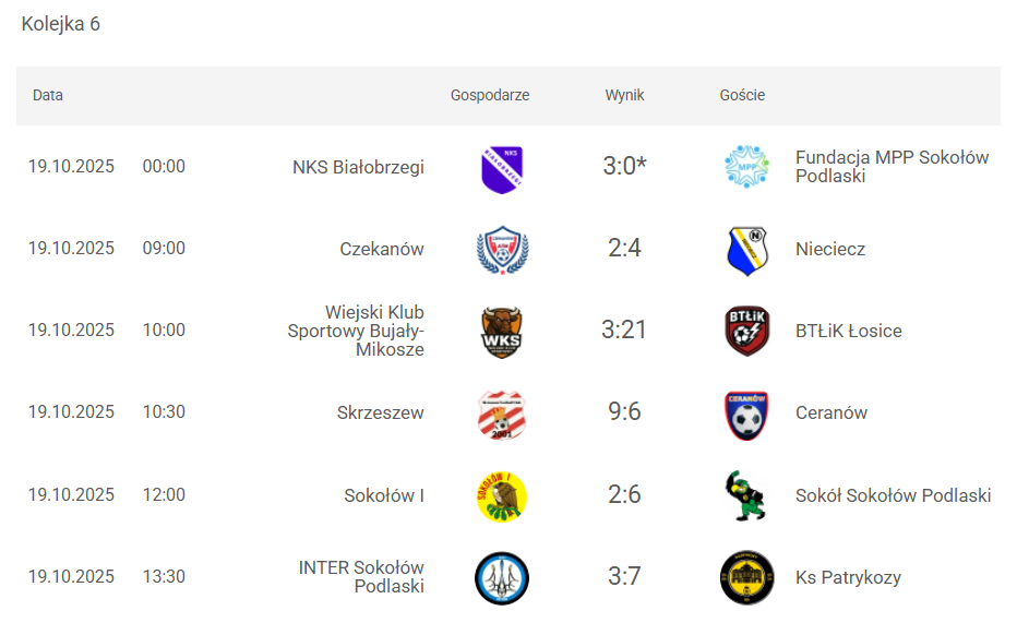 Kolejka numer 6 już za nami, rozegrano w niej 5 spotkań (jeden mecz zweryfikowany jako walkower –…