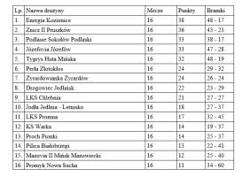 Spore powody do zadowolenia mają sympatycy Podlasia Sokołów Podlaski i Tygrysa Huta Mińska. Podopieczni Tomasza Janczarka w konfrontacji z KS Warka ani przez moment nie czuli zagrożenia i pewnie zwyciężyli 3:0. Trzy strzelone gole, a przede wszystkim dobra gra zwłaszcza w drugiej połowie napawa sporym optymizmem. Na piątkę spisał się także Tygrys. Na trudnym terenie w Promnej zwyciężył 5:2 miejscowy LKS. Wynik cieszy, bowiem gospodarze już w pierwszej minucie wyszli na prowadzenie. Podopieczni Sergiusza Wiechowskiego nie podłamali się stratą gola i swoją konsekwencją odnieśli ważny triumf.